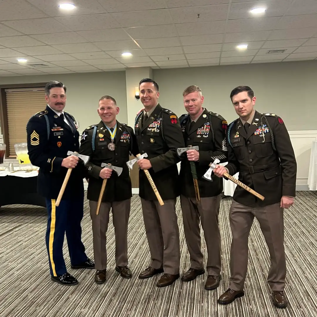1/23 Inf CSM Joe Wertz presenting to CSM "Hep" Hepfer (currently CSM of 2/3 Inf) the Order of the Tomahawk for his long service and dedication to the 1/23 Inf Bn. Nov, 2022.