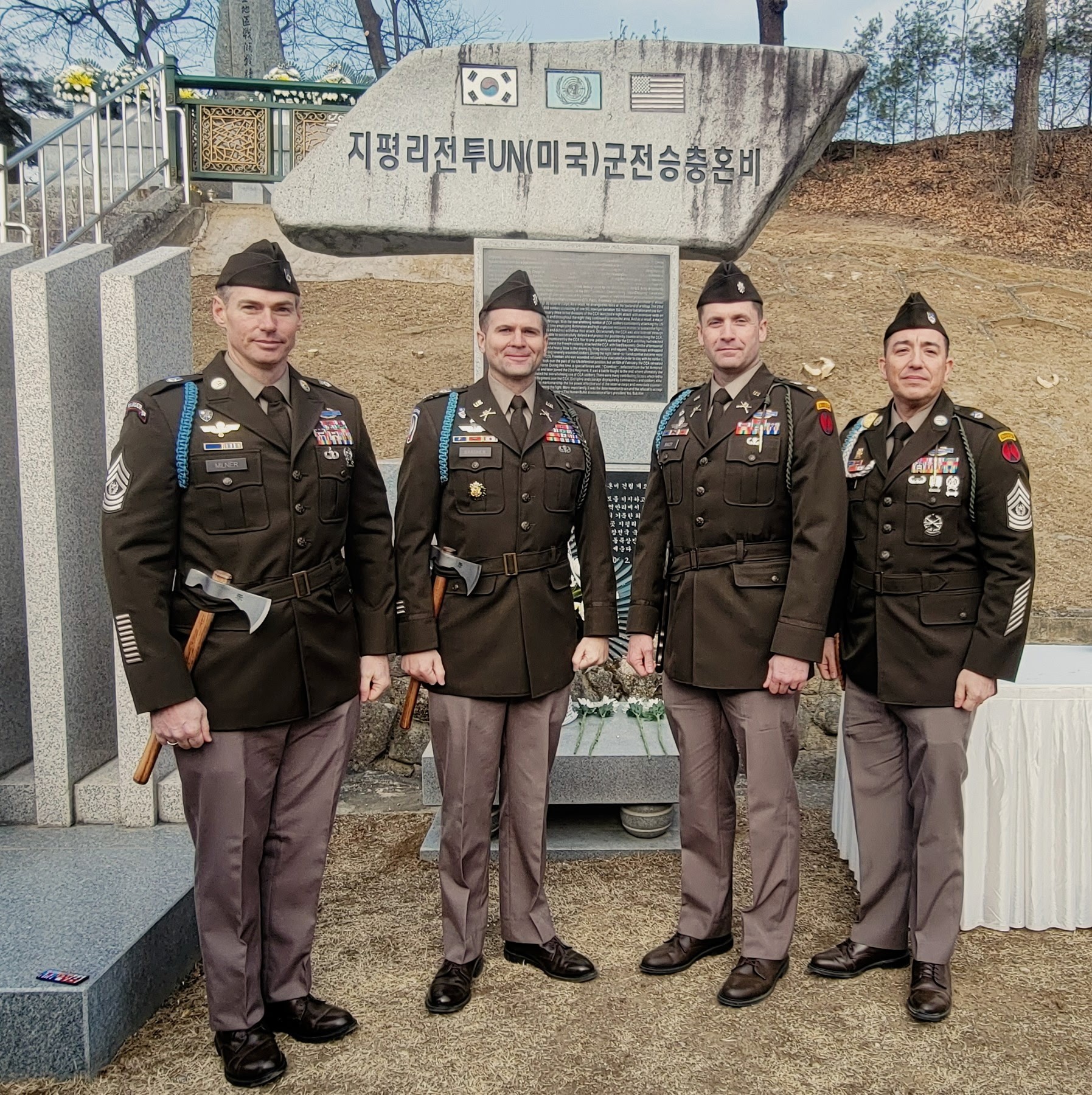 1/23 Bn Dining-In, Mar, 2025, Korea. Center LTC Meyer, Cdr; MSG Music; Maj Leverkhun; CSM McMurray & Maj Kknder.
